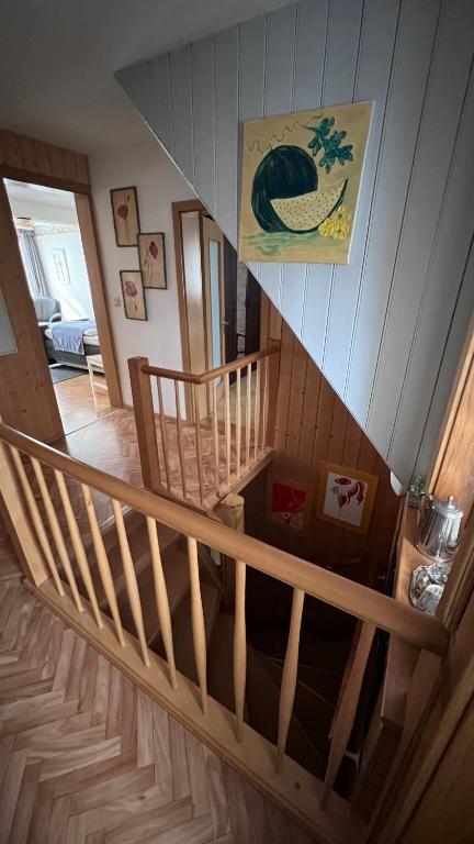 Aufteilung: Im Erdgeschoss befinden sich Wohnzimmer (TV, Schlafsofa), Küche sowie ein geräumiges Bad mit Dusche und Sauna. Im 1. Obergeschoss liegen ein Schlafzimmer mit Doppelbett und ein Wohnschlafzimmer mit Doppelbett. Für den Notfall gibt es ein kleines Einzelzimmer (Zugang über Schlafzimmer 1).